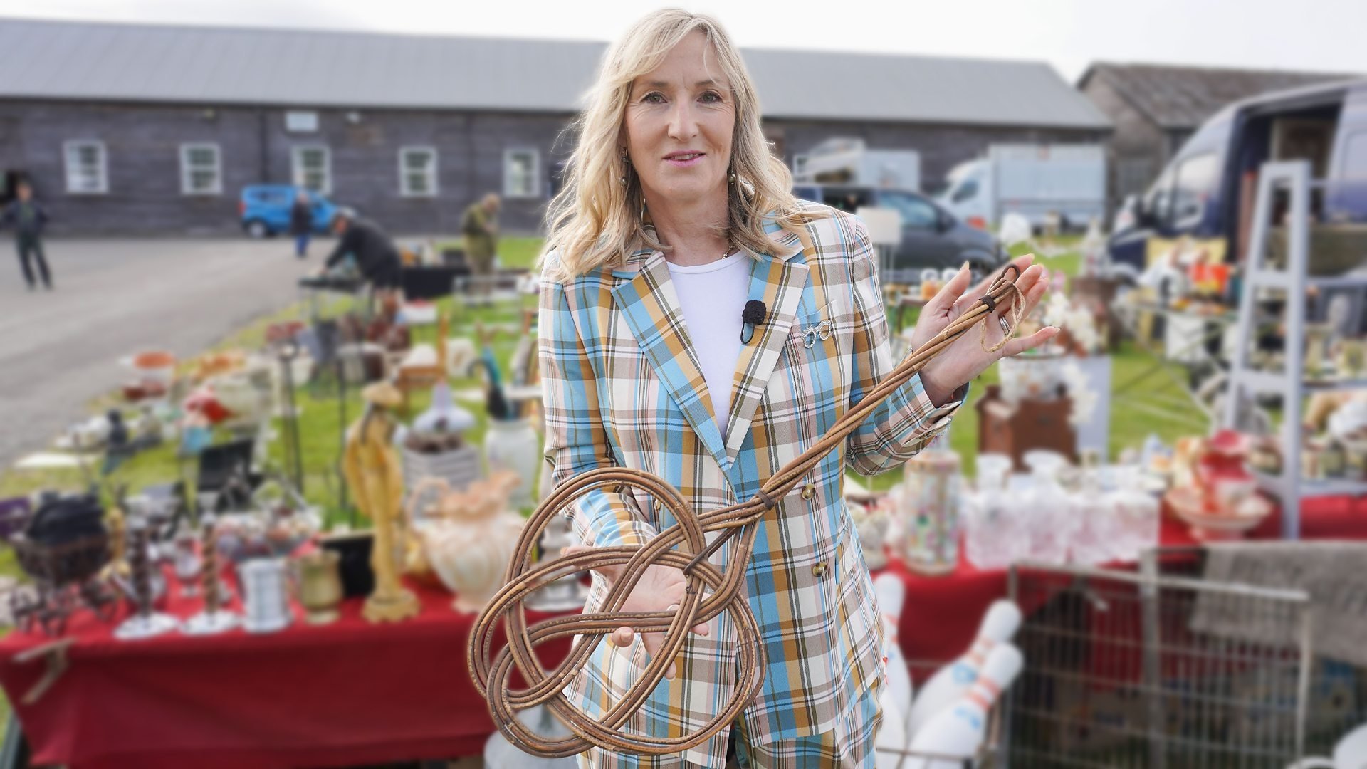Join Caroline Hawley as she hosts another episode at a bustling antiques fair in the border town of Oswestry.